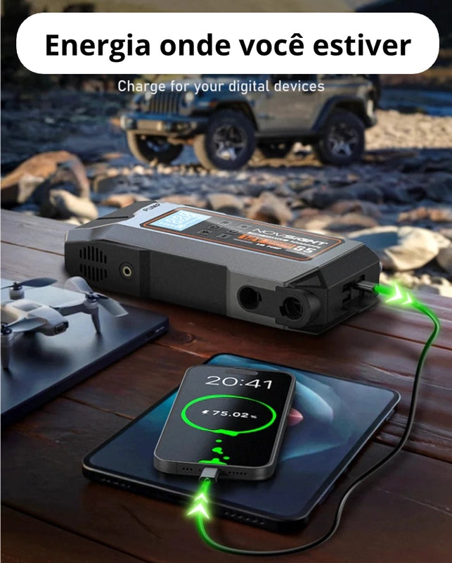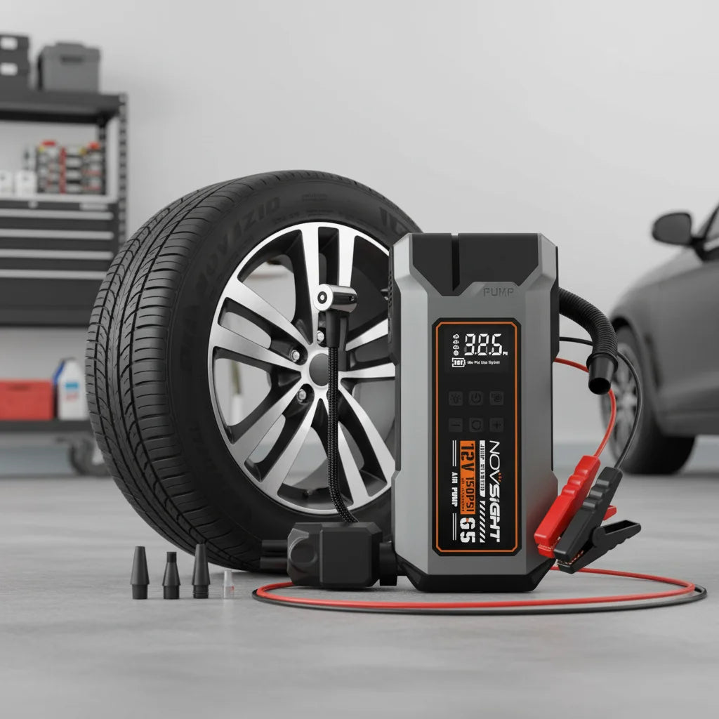 Mantén el control de tu viaje. Con NOVSIGHT, arranca tu coche, infla tus neumáticos y carga tus dispositivos. Una herramienta vital para navegar con confianza.