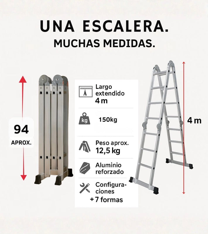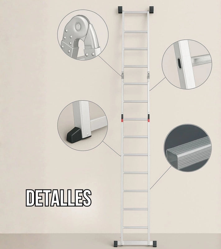 Construida con aleaciones de grado profesional, nuestra escalera garantiza una durabilidad sin igual. Soporta los entornos más exigentes, asegurando una vida útil prolongada y un rendimiento constante. Una herramienta indispensable para cada desafío.
